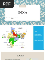 Republica India Forma de guvernmnt: republic federal Suprafaa: 3.287.590 km Populaia: [Link] locuitori Limba oficial: hindi, englez i alte 21 de limbi Religie: hinduism 80%, islamism 11%, crestinism (catolici 2%), budism, sikh. Capitala: New Delhi Moneda: rupia Ziua naional: 26 ianuarie Fus orar: GMT +5.30 Domeniu Internet: .in Prefix telefonic: 00 91 Aezare geografic India este o ar n sudul Asiei. India se afl pe locul 7 n ierarhia rilor dup suprafa, pe locul doi dup numrul locuitorilor i este democraia cu cei mai muli locuitori.