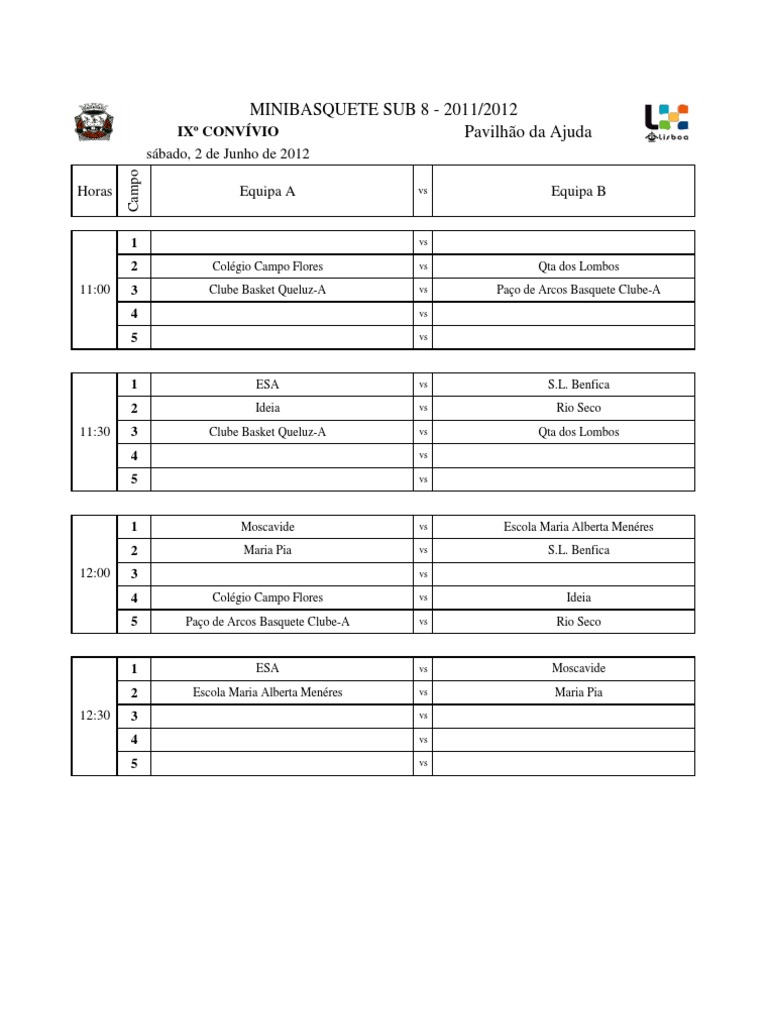 sbado, 2 de Junho de 2012 Horas Campo Equipa A