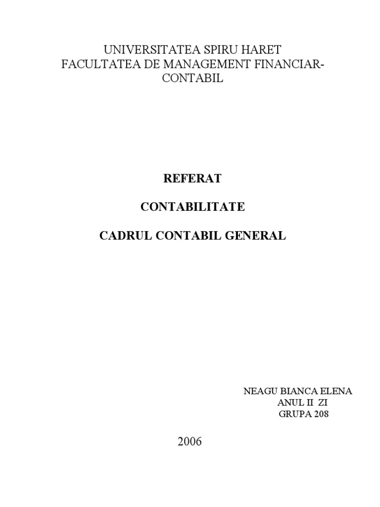REFERAT CONTABILITATE CADRUL CONTABIL GENERAL