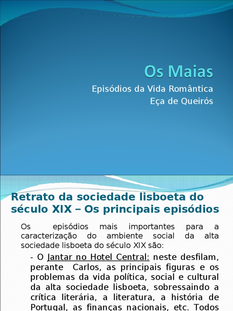 meio social lisboeta; Fornecer uma viso crtica sobre alguns problemas; Fazer com que Carlos veja pela primeira vez Maria Eduarda; .