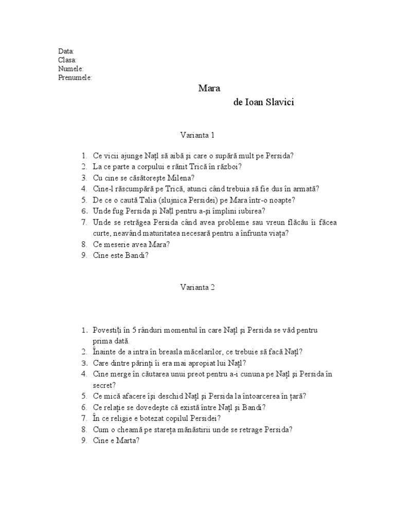 8. Ce meserie avea Mara?