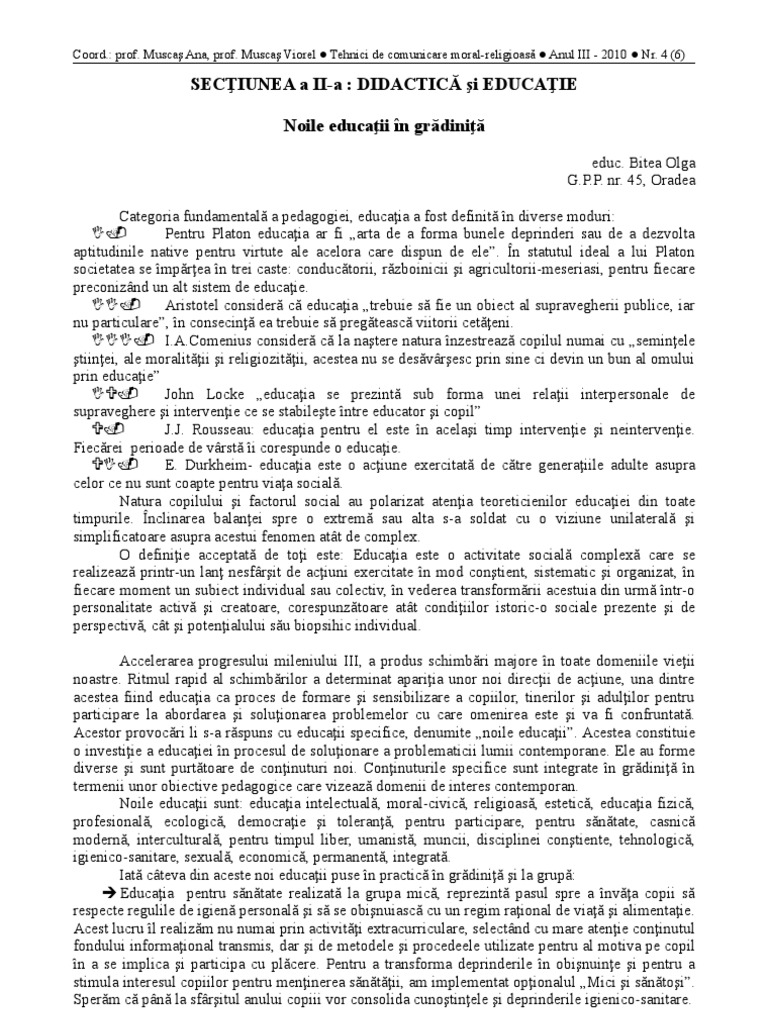 Coord.: prof. Musca Ana, prof. Musca Viorel Tehnici de comunicare moral-religioas Anul III - 2010 Nr. 4 (6)