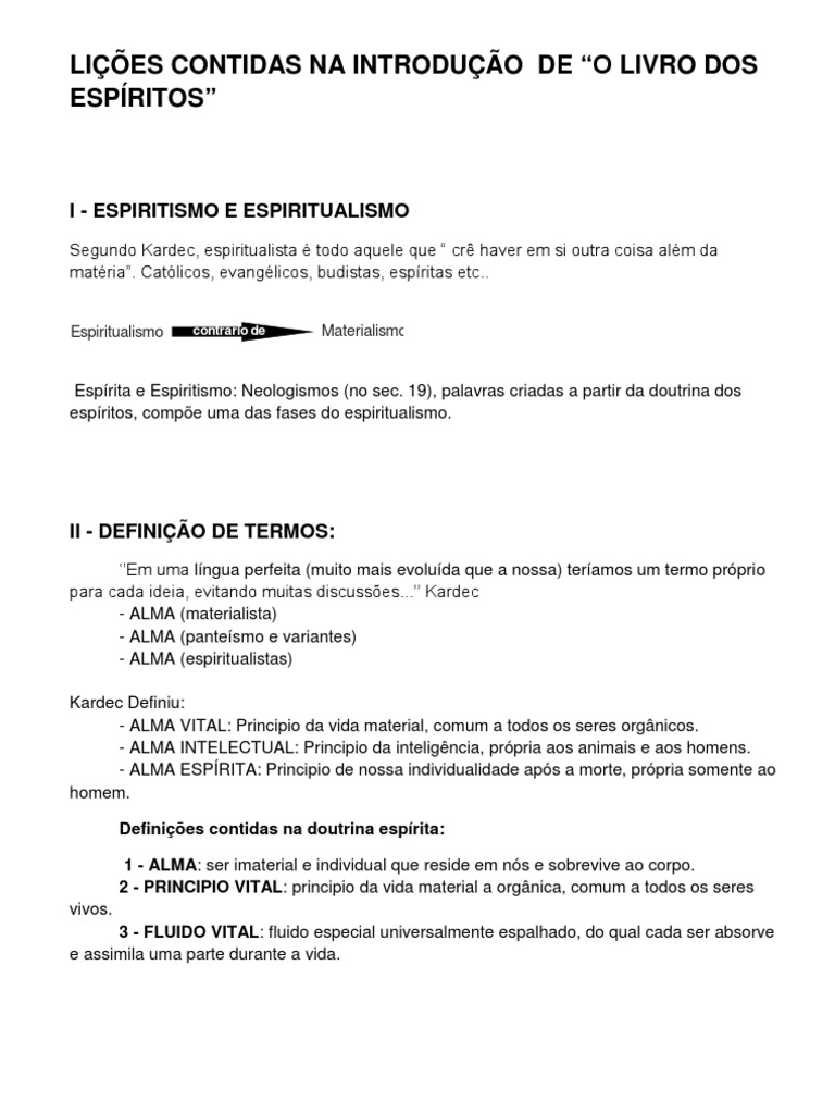 Em uma lngua perfeita (muito mais evoluda que a nossa) teramos um termo prprio para cada ideia, evitando muitas discusses... Kardec - ALMA (materialista) - ALMA (pantesmo e variantes) - ALMA (espiritualistas) Kardec Definiu: - ALMA VITAL: Principio da vida material, comum a todos os seres orgnicos. - ALMA INTELECTUAL: Principio da inteligncia, prpria aos animais e aos homens. - ALMA ESPRITA: Principio de nossa individualidade aps a morte, prpria somente ao homem. Definies contidas na doutrina esprita: 1 - ALMA: ser imaterial e individual que reside em ns e sobrevive ao corpo. 2 - PRINCIPIO VITAL: principio da vida material a orgnica, comum a todos os seres vivos. 3 - FLUIDO VITAL: fluido especial universalmente espalhado, do qual cada ser absorve e assimila uma parte durante a vida.