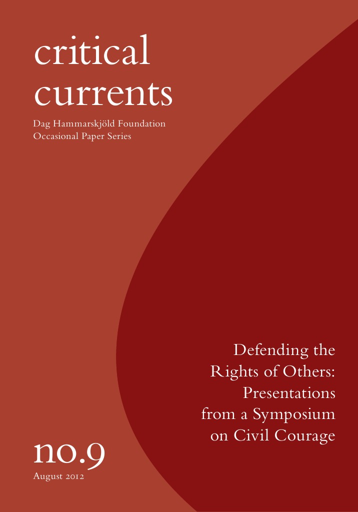 Hammarskjld put it, represents this UN ethic, or should represent it. Many may be aware of that fact, but may not have received much guidance on what is expected of them, either when it comes to identifying or implementing the UN values or when it comes to examples to follow. One of the purposes of this seminar is to explore this problem. Perhaps it sounds ambitious, but we should try in humility to become coaches of international civil servants in this area. To me personally, the launching of this seminar is as close to realising a dream as I can expect to get, a dream that I had not only during my years as Swedens ambassador for human rights, but long before that in Burma, in the Palestinian-occupied territories during the fi rst intifada, in the slums of New Delhi and on the Iraqi border during the Kuwait war. The rationale behind the dream: civil courage is to a large extent a question of defending the rights of others. The international legal framework for human rights has no doubt taken great steps forward during the past 60 years, but the implementation of the conventions still leaves much to be desired. I fear that the whole legal construction would be largely