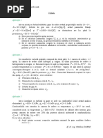 Conform principiului al doilea al termodinamicii, randamentul termic al unui ciclu este: B) Raportul dintre lucrul mecanic al ciclului si cantitatea de caldura introdusa; 3. La baza schematizarii ciclurilor teoretice de functionare a MAI stau urmatoarele ipoteze: B) Fluidul motor este gaz perfect, evolutiile deschise de schimbare a gazelor fiind neglijate, 4. Care dintre formularile urmatoare este cea corecta pentru descrierea realizarii ciclului motor: B) Procesul de transformare a energiei chimice continute n combustibil, prin care se 5. Ce caracteristica a ciclului Otto se regaseste n ciclul diesel real dar nu si n cel diesel teoretic: B) Crestere rapida de presiune n timpul arderii; 6. n motorul diesel, procesele de admisie, comprimare, ardere cu destindere si evacuare sunt realizate prin: A) Doua rotatii ale arborelui cotit la motorul n patru timpi; 7. Dependenta randamentului termic al ciclului diesel de parametrii functionali, de modul de organizare a proceselor si de proprietatile fluidului motor este urmatoarea: C) Creste cu raportul de comprimare si scade la cresterea sarcinii; 8. Pentru ciclul motorului supraalimentat, continuarea destinderii gazelor n turbina conduce la: C) Cresterea randamentului termic; 9. Pistonul motorului n patru timpi executa patru curse n timpul: B) Fiecarul ciclu de functionare; 10. n diagrama indicata din figura PT 3, axa volumelor este divizata n 16 unitati, indicnd: C) Un raport de comprimare e =16 ; [Link] un ciclu teoretic cu ardere mixta, parcurs de 1 kg de gaz perfect avnd exponentul adiabatic k, caldura specifica masica la volum constant cv [kJ / kgK], raportul de comprimare e si cunoscnd cantitatea de caldura specifica primita n cursul arderii izocore q1v [kJ / kg] si temperatura n starea de la sfrsitul admisiei Ta , sa de determine raportul de crestere a presiunii n prima parte a procesului de ardere.
