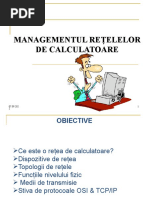 Figura 9-4: Structura Antetului IGMPv2 Cmpul Type este folosit pentru codificarea diferitelor tipuri de mesaje IGMP. Se amintesc: 0x11 Membership Query este mesajul folosit de ruter pentru a interoga existen a destinatarilor pentru un grup de multicast pe un segment de reea. Exist dou tipuri de query-uri folosite n IGMPv2: General Membership Query i Group-Specific Query. 0x16 Membership Report este folosit de staii pentru a semnala ruterului c cel puin un destinatar al unui grup specific de multicast exist pe segmentul de re ea. 0x17 Leave Group este folosit pentru a semnala ruterului gateway faptul c un destinatar nu mai dorete s primeasc trafic multicast. Cmpul MRT (Maximum Response Time) are o valoare ntre 0.1i 25.5 secunde i este folosit pentru optimizarea procesului de nregistrare la un grup i se va detalia n acest subcapitol. Acesta este exprimat n antet n zecimi de secunde: o valoare de 30 va nsemna 3 secunde. n mod implicit, valoarea este de 10 secunde ntr-un General Membership Query. Cmpul IGMP checksum este folosit ca i orice alt checksum din protocoale de comunicaie pentru a verifica integritatea mesajului. Cmpul Group Address este poate cel mai semnificativ din antet n n elegerea funcionalitii de nregistrare IGMPi este setat la diferite valori funcie de mesajul folosit. Spre exemplu, un General Membership Query va seta acest cmp la valoarea [Link] cci dorete s descopere orice destinatar al oricrui grup multicast pe un anumit segment.