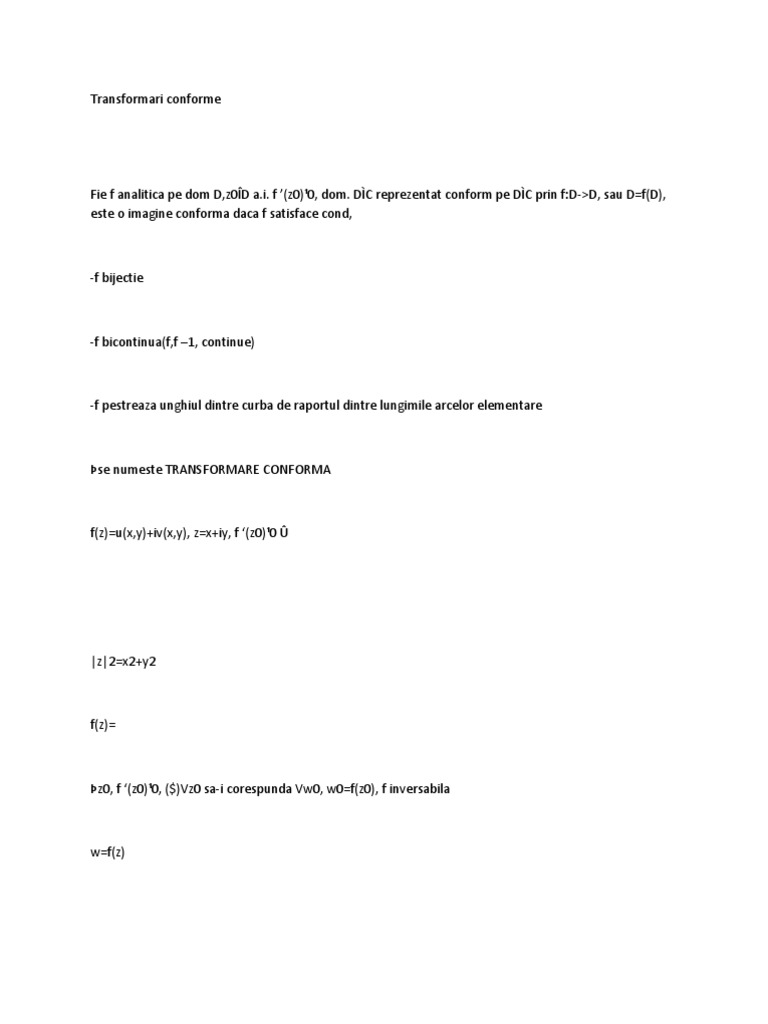 Fie f analitica pe dom D,z0D a.i. f (z0)0, dom. DC reprezentat conform pe DC prin f:D->D, sau D=f(D), este o imagine conforma daca f satisface cond,