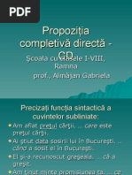 sta att naintea substantivului determinat, ct i dup acesta, dac substantivul e nsoit de o prepoziie. Se admit dou variante: casa n alecrei odi casa n odilecreia - la c. D (avnd funcie de complement indirect): Ipatese mai prinde n joclng un puior de fat, creia (= fetei) ochii i jucau n cap ca la o erpoaic (I. Creang); - la c. Ac. (avnd funcie de complement direct): 51 Dorul pe care (= pe dor) l-ai pierdut Nu-l maicuta-n trecut (Creaia popular). - Ce: Limba noastr-i foc ce arde (A. Mateevici) - cine: Indiferent de faptul cine era vinovat au fost pedepsii toi. 2. prin adverbe relative(unde,cnd). Cuvintele conjunctive unde,cnd exprim sensuri locative i temporale, ntruct elesnt adverbe de loc i de timp, i deci vor ndeplini funcia de complemente circumstaniale de loc i de timp. - unde: Ne-am ntlnit la locul unde (= acolo, aici etc.) drumurilese ntretiau. - cnd: A venitziua cnd (= azi, ieri etc.) trebuias plecm lastudii. 3. prin conjuncii: -c: Am impresiac totulse duce derp. - de: