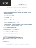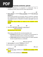 numr i gen (plural, masculin), dar cazul e dativ, fiind complement indirect praeest. n acest sens, trebuies menionmc acest tip de subordonat s-apstrat i n limba romn, ndeplinind aceeai funciesintactic. Astfel, propoziiasubordonat care determin un substantivsau un alt cuvnt cu valoare substantival din regent, ndeplinind funcia sintactic de atribut i rspunznd la ntrebarea care? ce fel de? a (al, ai, ale) cui?ci?cte?, se numete atributiv (SA). Reieind din definiia propus, constatmc subordonata atributiv ndeplinete la nivelul frazei, aceeai funcie sintactic pe care o ndeplinete atributul la nivelul propoziiei. n acest sens, invocmprerea M. Avram, care, dezminnd afirmaiile GA, vol. II (propoziiile subordonate cunosc categorii pe care nu le aflm printreprile de propoziie), susinec ntre propoziiile 48