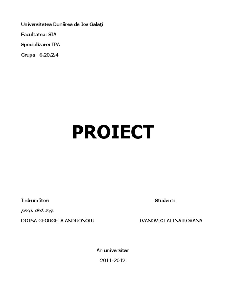 Universitatea Dunrea de Jos Galai Facultatea: SIA Specializare: IPA Grupa: 6.20.2.