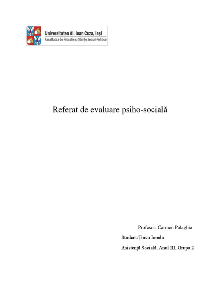 Profesor: Carmen Palaghia Student:ncu Ionela Asisten Social, Anul III, Grupa 2