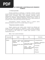 2. Teoreanu I., Ciocea N., Brbulescu A., Ciontea N., Tehnologia produselor ceramice i refractare, Editura Tehnic, Bucureti, 1985. 3. Nicolae A. i colab., Materiale ceramice refractare pentru instalaii termotehnologice, Ed. Fair Parteners, Bucureti, 2000. 4. SC. Ceramica SA Iasi, SC. Regulamentul de fabricatie a caramizilor de constructie. 5. [Link] SC Ceramica SA Iasi. 6. [Link] Autorizaie integrat de mediu pentru SC Ceramica SA Iasi