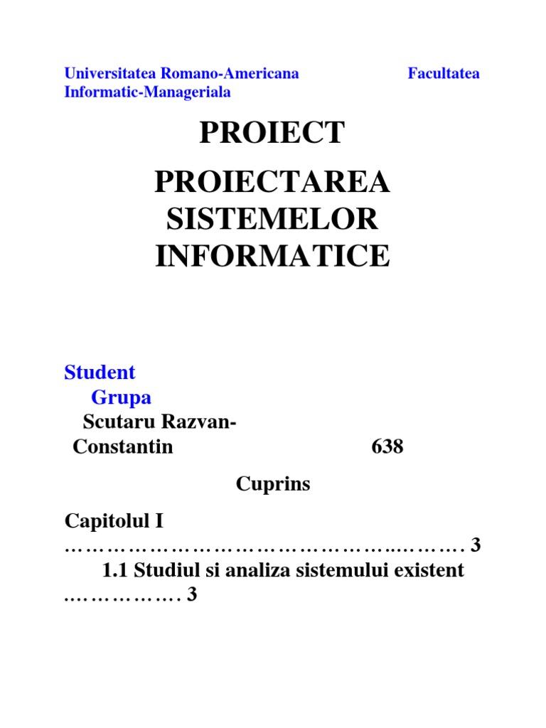 PROIECT PROIECTAREA SISTEMELOR INFORMATICE
