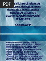 manifesta si in Romania. Aceasta amenintare poate afecta activitatea firmelor din punct de vedere al vanzarilor, care se prognozeaza ca vor scadea in urmatoarele luni, astfel firmele sunt nevoite sa creasca preturile pentru a-si putea acoperi cheltuielile. In acelasi timp concurenta pe piata IT este din ce in ce mai acerba, iar pentru a-si mentine pozitia de lider HP trebuie tot timpul sa faca apel la noi tehnologii si sa se concentreze la nevoile si cererile mereu in schimbare ale clientilor.