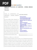 [Link]: stoicismul roman- interferente [Link] Cultura romana si spiritul roman s-au dovedit a fi mai pragmatice in comparatie cu spiritul vechilor greci. Romanii au fost mai mult inclinati spre domenii cu aplicabilitate imediata. Cu toate acestea, in gandirea politica a fost necesara o aplecare mai consistenta, intrucat dupa ce Statul Roman si-a intins teritoriul, era nevoie de o justificare teoretica a noii situatii politice. Astfel, din cultura elenistica, sinteza a civilizatiei persane si a celei grecesti, care in plan politic a avut drept cauza divizarea Imperiului lui Alexandru Macedon, romanii au preluat elemente din gandirea stoica. Geneza acesteia a avut punct de plecare in pierderea importantei polis-ului grecesc, forma perfecta a comunitatii la Aristotel. Grecul Polybius, un grec latinizat, asa cum l-a numit mai tarziu gandirea politica moderna, gasea ca cheia succesului Romei era guvernamantul sau mixt (12). Geneza statului roman, asa cum el era la momentul la care istoricul si-a petrecut 17 ani din viata ca ostatic, se regaseste in impartirea inteleapta a puterii. Ideea nu era noua, intrucat Platon, ca si Aristotel, o sugerase in dialogurile sale, dar Polybius a dezvoltat-o mai mult decat predecesorii sai. Republica Romana era un guvernamant mixt, spunea el, deoarece nici o singura persoana, nici mai multe, nici cei multi nu detin excesiv puterea. In schimb, Republica amesteca sau echilibra aceste trei regimuri intr-un mod in care erau pastrate partile lor bune, evitandu-se defectele lor. In loc sa acorde toata puterea unei singure persoane, catorva sau oamenilor obisnuiti, Republica Romana a impartit puterea intre ei. Astfel poporul ca intreg exercita un oarecare control asupra deciziilor politice prin adunari dar la fel faceau si aristocratii care controlau Senatul. Apoi, in locul unui monarh, Republica se baza pe consuli pentru implementarea