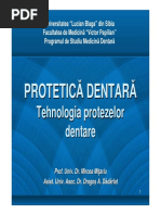 C) Clasificarea protezelor fixe dup tehnologiile de realizare De-a lungul istoriei protezelor fixe, tehnologiile de elaborare ale acestora (sau a unor componente) au evoluat n paralel cu dezvoltarea materialelor i a cuceririlor tiinifice din multiple domenii, stomatologia mprumutnd i adaptnd o serie de idei i procedee industriale. Dac pn la jumtatea secolului XX tehnologiile protezelor fixe recunoteau patru procedee majore de elaborare (ambutisarea i turnarea pentru aliaje, coacerea pentru ceramic i polimerizarea pentru polimeri), n ultimele decenii asistm la o explozie de tehnologii noi care au culminat cu tendinele de nlocuire a amprentei convenionale cu amprenta optoelectronic promovat de ctre Francois Duret (1972) i mecano-electronic. Aceste modaliti noi de amprentare au permis conceperea i ulterior dezvoltarea unor tehnologii noi dintre care tehnicile CAD/CAM au revoluionat specialitatea. n continuare redm schematic o propunere de clasificare tehnologic a protezelor fixe, care, nendoelnic, va suferi continuu completri i modificri. Protezele fixe se pot realiza prin: