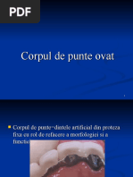 E) Clasificarea protezelor fixe dup materialul (materialele) din care sunt confecionate: metalice polimerice materiale compozite metalo-ceramice metalo-polimerice (acrilice) metalo-compozite integral ceramice (fr infrastructur metalic) F) Clasificarea protezelor pariale fixe (Korber) 1. Dup relaia cu pilierii: - intercalate (susinute de dini la ambele capete); - cu extensie (susinut la un capt n consol; - continue (peste mai multe bree - punte total) 2. Dup zona topografic: - la maxilar sau la mandibul - n zona lateral - n zona frontal 3. Dup modul de fixare: - fixate la dini naturali restani - fixate la stlpii implantari - mobilizabile: - telescopate - prin diferite sisteme de coroane de substituie - prin culisare matrice-patrice - demontabile (de obicei fixate cu uruburi) 4. Dup fizionomie: - nefizionomice - imit n totalitate cromatica dentar - imit doar parial cromatica dentar 5. Dup raportul intermediarilor cu creasta alveolar: - cu atingerea crestei: - ea - semiea - tangent - punctiform - la distan de creast (suspendate) 6. Dup modalitatea construciei scheletului metalic: - masive - scheletizate (armate) 7. Dup relaia cu dinii stlpi i zonele topografice: - intercalat unilateral - intercalate bilaterale intercalat frontal - intercalat latero-frontal - continu latero-frontal-lateral - intercalate latero-fronto-laterale