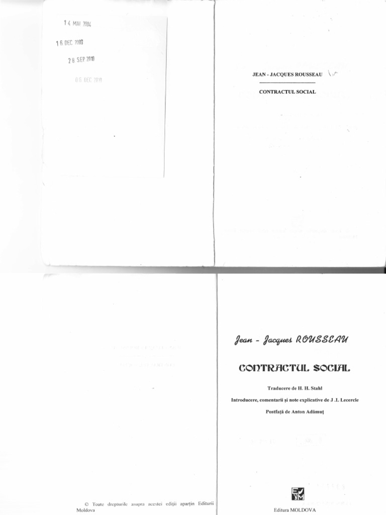 ,... . . ... 5 Elaborarea ,rCont:'actului Soci:rlo' . Problema contractului social ir,,linte de Roussenu 10 t7 Analiza Contractului sociol 27 inscmnitatea Com.,rctului social lnfi!uen{a Contractului social 53 Actualitatea Contr,,ctului sociul 57 Indica{ii bibliogr r fice