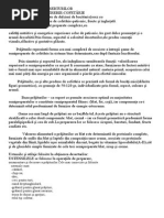 1.5 Carcaterizarea produselor din aluat oparit Pregatirea componentelor Include prepararea cojilor, a cremei de vanilie, a jeleului si pregatirea compozitiei de frisca, fondantului si a merelor. Cojile, pentru toate preparatele, se prepara dupa tehnologia cunoscuta. Tehnica prepararii Amestecul de apa, ulei, sare se fierbe in cazanel pana atinge punctul de fierbere, se adauga intreaga cantitate de faina, se amesteca cu paleta repede pentru a se asigura inglobarea intregii cantitati de faina, pana ce aluatul se desprinde usor de pe cazanel. Se retrage continuand amestecarea, manual sau mecanic, pana scade temperatura la 60 o C. Se incorporeaza ouale prin amestecare continua, ingloband, concomitent, si o mare cantitate de aer. Turnarea se face cu posul cu sprit specialin tava pregatita, in forme corespunzatoare preparatelor: baton de 10 -12 cm ptr ecler, cu crema de vanilie, avelina cu 5 cm pentru coji de chou a la creme si eclere cu fructe. Coacerea se face initial la temperatura ridicata ( 180o C), apoi la temperatura moderata o (120 C), fara a se deschida cuptorul primele 10 -15 min. Gradul de coacere se apreciaza dupa consistenta cojii, care trebuie sa fie tare la pipait. Conditii de calitate Aluatul sa aiba consistenta lejera, dar sa-si mentina forma la [Link] copt sa fie usor, bine crescut, uniform rumenit,iar in sectiune sa aiba porozitate accentuata, cu aspect de fagure, globuri uscate in interior, gust si aroma placuta. Taierea capacelor la coji Cojile pentru eclerul cu crema de vanilie se taie numai pe o latura, pe toata lungimea, fara a detasa capacul, iar pentru chou a la creme si ecler cu mere taierea este totala, la o distanta de 3/4 de la baza pentru chou si 1/2 pentru ecler cu fructe. Asamblarea si finisarea cuprind urmatoarele faze: Umplerea este operatia comuna celor trei preparate si consta in turnarea cremei de vanilie in spatiul liber al cojilor, pana la marginea cojii taiate, cu posul cu dui. La eclerul cu mere se umple ambele capace. Glasarea si decorarea sunt optiuni specifice pentru fiecare preparat. Prezentarea si servirea Toate preparatele se prezinta in vitrine frigorifice si se servesc la bucata.