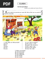 I. Ghici ghicitoarea mea: 4. i prin cas i pe afar; ori de cte ori se ntlnesc, tot mereu se 2. Subt un deal este o rp. sfdesc. 3. Am o cloc: 5. Ce nu pot s pun n noaptea i strnge puii, cuiu? iar ziua i trimite afar. 1. Am o gin pestri; duce vestea la Gheorghi. II. Zicei de multe ori: rup o crp crp, crp rupt... III. Ce e mai greu: un kilogram de ln ori un kilogram de fier? IV. Luai un ban i cinci bee de chibrituri. Aezai-le cum voii, ca s putei ridica banul i beioarele, innd de un singur chibrit. V. Isclii-v pe bnci cu litere mari de tipar fcute din beioare. VI. Cu aceste bucele de hrtie, facei o mas i 2 scaune: