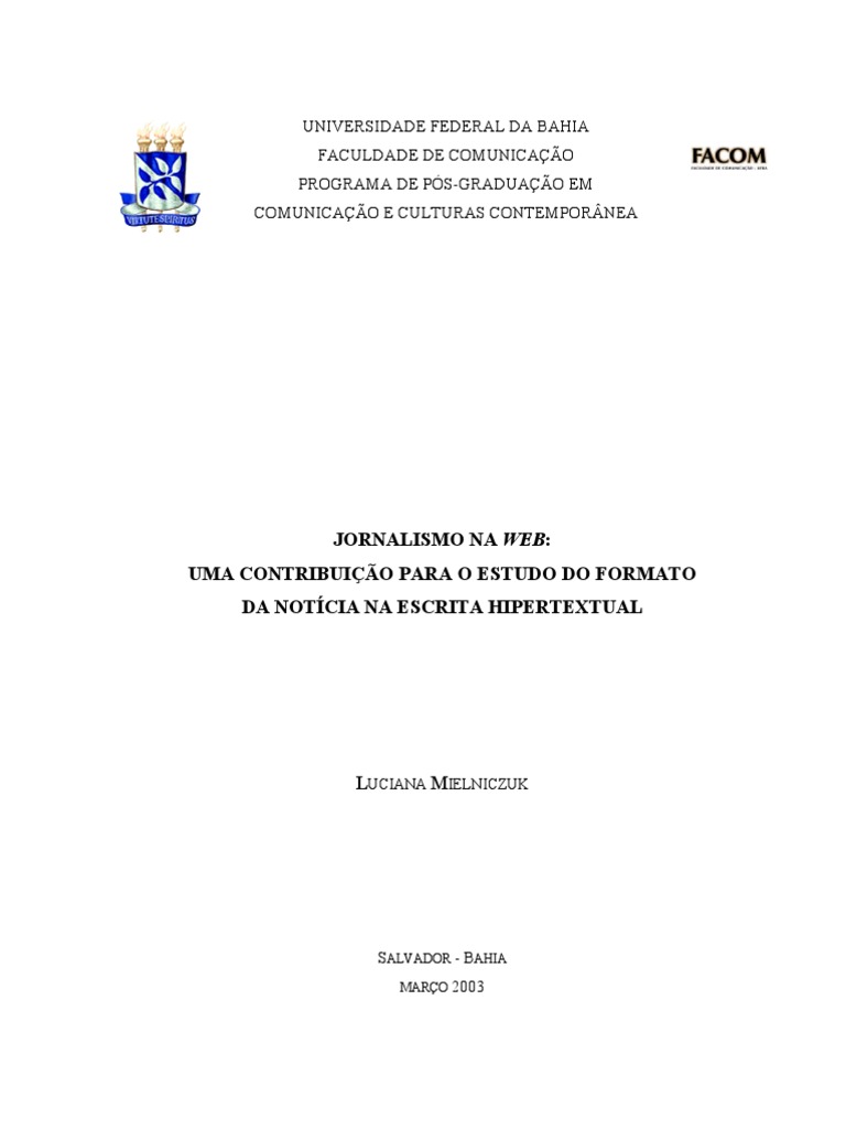 Acreditamos que somente estudos sobre o formato da notícia hipertextual na web permitirão