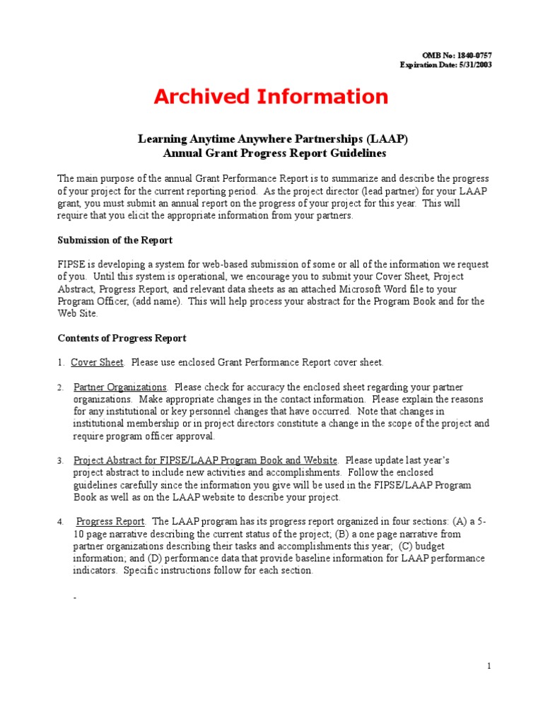 4. Progress Report. The LAAP program has its progress report organized in four sections: (A) a 5-