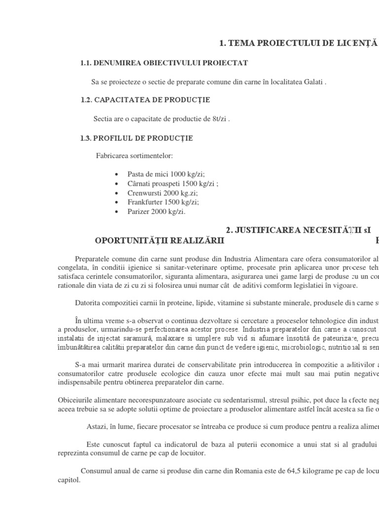 n aceast lucrare propun realizarea unei sectii de preparate comune din carne n orasul Gala Revolutiei. Datorit pozitiei acestui oras si a functionrii diferitelor tipuri de firme mari, mici, importante acestora si numrul mare de angajati consider c este ideal o sectie de preparate comune din carn Crenvursti, Past de mici, Crnati proaspetisi Frankfurter, ce poate fi un succes pentru distribuirea produs