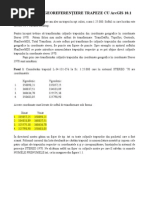 Transcalculul coordonatelor Programul TransDatRo In conformitate cu recomandarile EUREF (European Reference Frame) si EuroGeographics, ANCPI a inclus in strategia si programele de dezvoltare in curs de derulare, activitati de modernizare a Retelei Geodezice Nationale (RGN). In cadrul acestor activitati se situeaza si cea de integrare a RGN in reteaua europeana de referinta (EUREF) si de implementare in tara noastra a sistemului de referinta european - ETRS89 (European Terrestrial Reference System - 1989) avand la baza elipsoidul GRS80. Implementarea ETRS89 se realizeaza prin integrarea unor puncte determinate prin tehnologie satelitara in reteaua europeana de referinta. ANCPI a realizat acest lucru in anul 2006 si prin integrarea unor statii GPS permanente in reteaua europeana de statii GPS permanente (EUREF-EPN). La nivel national, actuala retea de statii GPS permanente incluzand un numar de 58 statii, constituie noua Clasa A a RGN. Pe baza materializarii in teren si a determinarilor GPS realizate in anii 2003 si 2004, ANCPI a realizat si Clasa B a RGN, care include un numar de circa 300 de puncte. Atat Clasa A, cat si Clasa B a noii RGN au fost determinate in sistem ETRS89, fapt care creeaza premisele implementarii oficiale a acestui sistem de referinta in Romania. Pentru a realiza trecerea coordonatelor determinate in sistem ETRS89 la coordonate in sistem national s-a realizat programul de calcul TransDatRo, bazat pe un set de puncte cu coordonate determinate in ambele sisteme (european si national). ANCPI intentioneaza modificarea in viitor a actualelor norme tehnice in sensul implementarii softului TransDatRo, in locul obligativitatii realizarii transformarilor locale de coordonate. Acest fapt va duce la importante economii de timp si resurse in determinarea coordonatelor in sistemul national de referinta, incurajandu-se utilizarea tehnologiilor de pozitionare satelitare in realizarea retelelor geodezice. Pana la obtinerea unui grid de transformare determinat pe baza unei repartitii uniforme a punctelor comune pe tot teritoriul tarii, programul TransDatRo este pus la dispozitia celor interesati, pentru testare si analiza performantelor sale. TransDatRo se adreseaza in primul rand specialistilor care realizeaza lucrari in domeniile geodeziei, cartografiei, fotogrammetriei, teledetectiei si cadastrului pe teritoriul Romaniei, care sunt avizate si receptionate de catre Agentia Nationala de Cadastru si Publicitate Imobiliara (ANCPI) sau institutiile sale subordonate. Programul de calcul a fost imbunatatit prin introducerea de noi module (transformarea inversa Stereo70 > ETRS89, transformare ETRS89 <> Stereo local Bucuresti, s.a.). Tipul de coordonate care pot fi transformate in cadrul acestei versiuni de program sunt cele elipsoidale de pe elipsoidul GRS80, sistem ETRS89, care sunt obtinute prin CONECTAREA la Reteaua Geodezica Nationala (RGN) de clasa A si B (statii GPS permanente si/sau borne ale Clasei B), ale caror coordonate sunt disponibile la Fondul National Geodezic si Oficiile de Cadastru si Publicitate Imobiliara. Pentru transformare, s-a realizat o retea regulata (grid) de distorsiuni care inglobeaza modelul de distorsiune al vechiului datum local fata de noul datum european si care permite interpolarea distorsiunilor locale pentru punctele noi transformate. In versiunea actuala, TransDat dispune de modulul de transformare directa intre sistemul european de referinta ETRS89 si