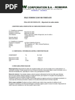 Temperatura de aprindere nu se aprinde *Valorile acestor caracteristici sunt aproximative, au numai caracter informativ general i nu sunt parte a condiiilor tehnice de calitate. UTILIZRI: Industria chimic organic i anorganic ca materie prim Industria chimic, petrolier ca agent de neutralizare Staiile de demineralizare ap ca agent de regenerare a rinilor schimbtoare de ioni Industria metalurgic i constructoare de maini ca agent degresant AMBALARE I DEPOZITARE: Se ambaleaz n cisterne de oel cptuite n interior cu ebonit, ale furnizorului sau beneficiarului. Se depoziteaz n rezervoare de oel ebonitate, prevzute cu conducte de degazare. MSURI DE PROTECIE: Acidul clorhidric este un produs agresiv i toxic. nainte de a manipula i utiliza acest produs, personalul trebuie s fie familiarizat cu informaiile referitoare la pericolele la care este expus. Aceste informaii sunt disponibile n mai multe forme, de exemplu MSDS i etichete ale produsului. Pentru informaii suplimentare contactai Serv. Tehnic din cadrul SC OLTCHIM SA. Not: Informaiile coninute n aceast Fi Tehnic sunt valabile pn la 31 decembrie 2005. V rugm s contactai SC OLTCHIM SA pentru a v informa dac acest document a fost revizuit, la adresa de internet : [Link]