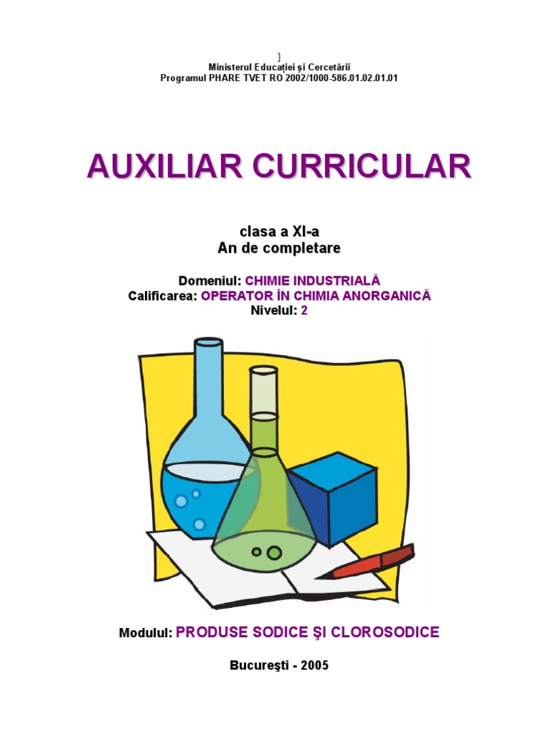 Prezentul material se adreseaz profesorilor si elevilor de la coala de Arte i Meserii, clasa a XI-a an de completare, nivelul 2, domeniul: CHIMIE INDUSTRIAL Operator n chimia anorganic