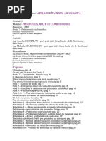 Proprieti specifice: Masa molecular 70,914 Punct de fierbere -33,6C Presiunea de vapori la 20C 6860 mmHg Densitatea n stare gazoas la 0C i 3,214 g/cm3 760 mmHg Densitatea n stare lichid la 0C i 1,47 g/cm3 3,65 atm. *Valorile acestor caracteristici sunt aproximative, au numai caracter informativ general i nu sunt parte a condiiilor tehnice de calitate. Utilizri: La fabricarea acidului clorhidric La epurarea apelor Sinteza unor produse chimice Ambalare i depozitare: Se ambaleaz n cisterne speciale ale furnizorului sau clientului i n butelii sau containere ale clientului. Se depoziteaz n rezervoare special amenajate. Transportul auto se face cu maini special amenajate, nsoite de un delegat autorizat i instruit n acest sens. Cisternele CF sunt nsoite de un delegat autorizat pn la grani. Msuri de protecie: Clorul este un produs toxic. nainte de a manipula i utiliza acest produs, personalul trebuie s fie familiarizat cu informaiile referitoare la pericolele la care este expus. Aceste informaii sunt disponibile n mai multe forme de exemplu MSDS i etichete ale produsului. Pentru informaii suplimentare contactai Serv. Tehnic din cadrul SC OLTCHIM SA Not: Informaiile coninute n aceast Fi Tehnic sunt valabile pn la 31 decembrie 2005. V rugm s contactai SC OLTCHIM SA pentru a v informa dac acest document a fost revizuit.