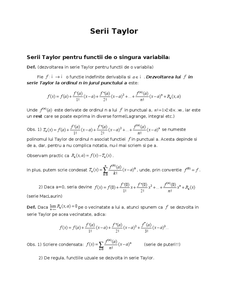 2) De regula, functiile uzuale se dezvolta in serie Taylor.