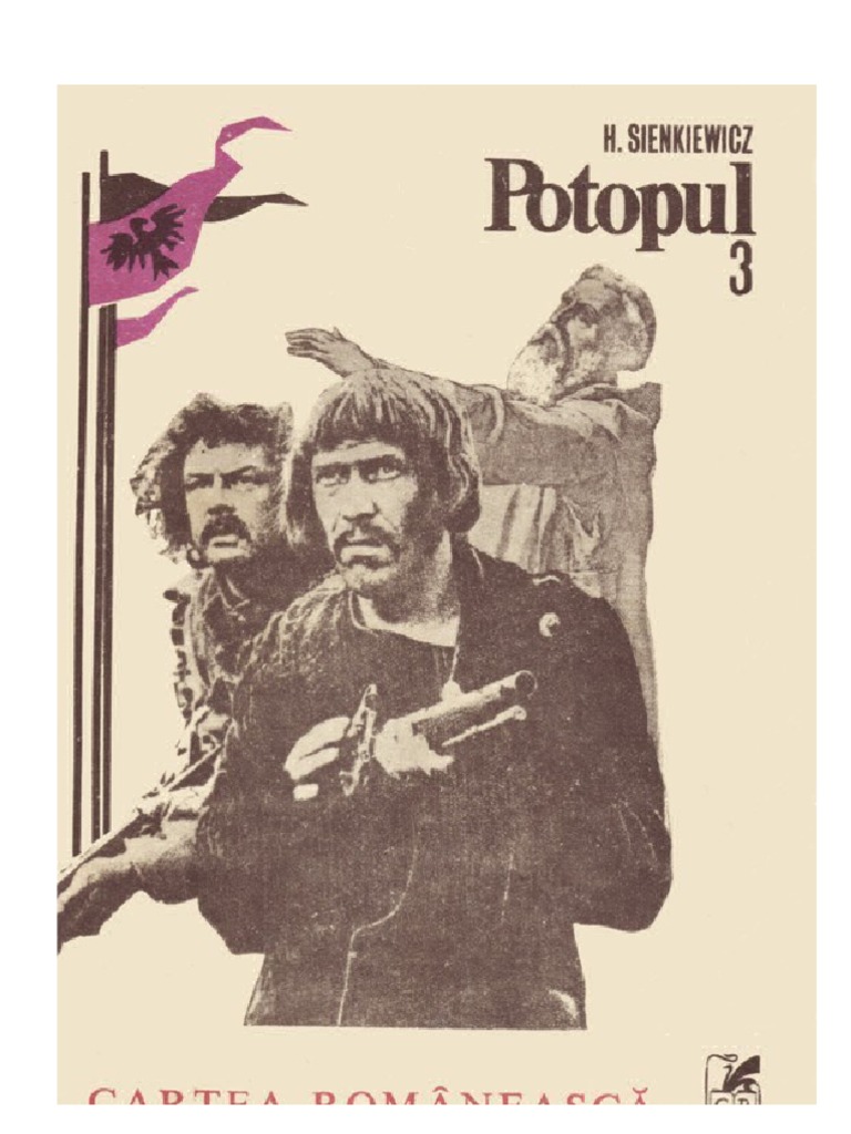 care-i trecea peste umr. Spada scp din mna nenorocitului i noaptea i cuprinse mintea, dar nainte de a cdea de pe cal, Woodyjowski ddu drumul sbiei, lsnd-o s atrne de curelue, i l apuc de brae. Suedezii de pe malul cellalt izbucnir ntr-un strigt uria, n timp ce jupn Zagoba se repezi la micul viteaz. Jupne Micha, tiam c aa are s se ntmple, dar eram gata s te rzbun. Era un mare meter, rspunse Woodyjowski. Domnia ta, ia-i calul de drlog, c e de soi bun. Ehei, dac nu era rul, am fi nceput petrecerea i cu ceilali! Cel dinti a Vorbele lui jupn Zagoba fur ntrerupte de uierul plumbilor, aa c nu-i mai isprvi gndul i strig: Jupne Micha, s mergem, vnztorii tia sunt n stare s ne mpute! Plumbii nu mai au putere, rspunse Woodyjowski, pentru c ne aflm prea departe. n acest timp, i nconjurar ali clrei polonezi, firitisindu-l pe Woodyjowski i uitndu-se la el cu admiraie, iar el i mica mustcioara, pentru c i el era mulumit de isprava lui. Pe malul cellalt, suedezii lrmuiau ca stupul nainte de a roi. Tunarii aduser n grab tunurile, aa c n rndurile poloneze trmbiele sunar retragerea. La auzul lor, fiecare se repezi spre steagul su i ntr-o clip fur gata de drum. Se retraser la poalele pdurii i se oprir din nou, fcndu-i parc loc dumanului i poftindu-l s treac rul. n sfrit, n faa oamenilor i a cailor iei brbatul clare pe fugarul alb cu pete negre, cu burca pe umeri i pan de strc la cciul; avea buzduganul aurit n mn. Se vedea destul de bine, deoarece cdeau asupra lui razele roietice ale soarelui care apunea. Dealtfel clrea pe dinaintea polcurilor, de parc le trecea n revist. Suedezii l recunoscur numaidect i ncepur s strige: Czarniecki! Czarniecki! El ns vorbea ceva cu polcovnicii. l vzur oprindu-se mai ndelung n faa micului cavaler, care-l doborse pe Kannenberg, i punndu-i mna pe umr, apoi ridic buzduganul i steagurile se ndreptar ncet spre pdure unul dup altul. Tocmai scptase soarele. La Jarosaw bteau clopotele prin 43