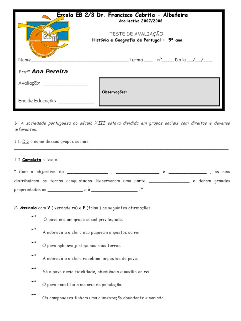 1- A sociedade portuguesa no século XIII estava dividida em grupos sociais com direitos e deveres