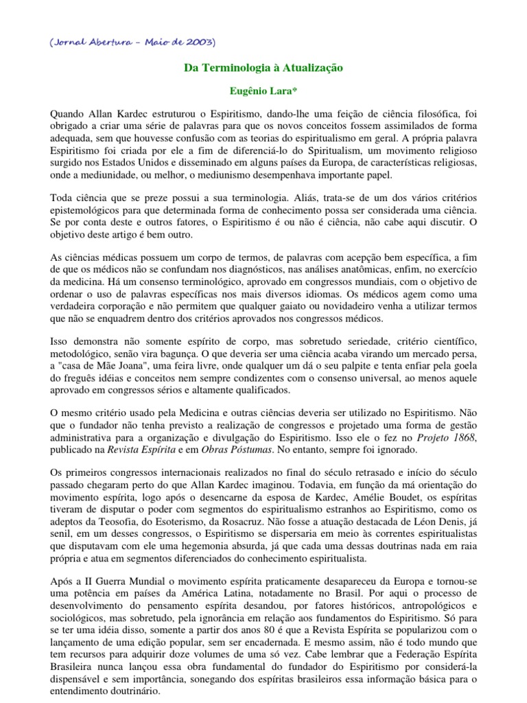 Um processo de atualização do Espiritismo começa pela sua terminologia. Questões conceituais,