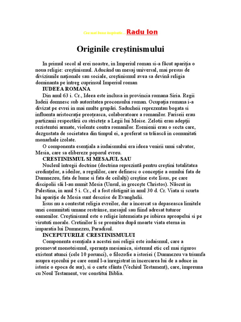 diviziunile naţionale sau sociale, creştinismul avea sa devină religia