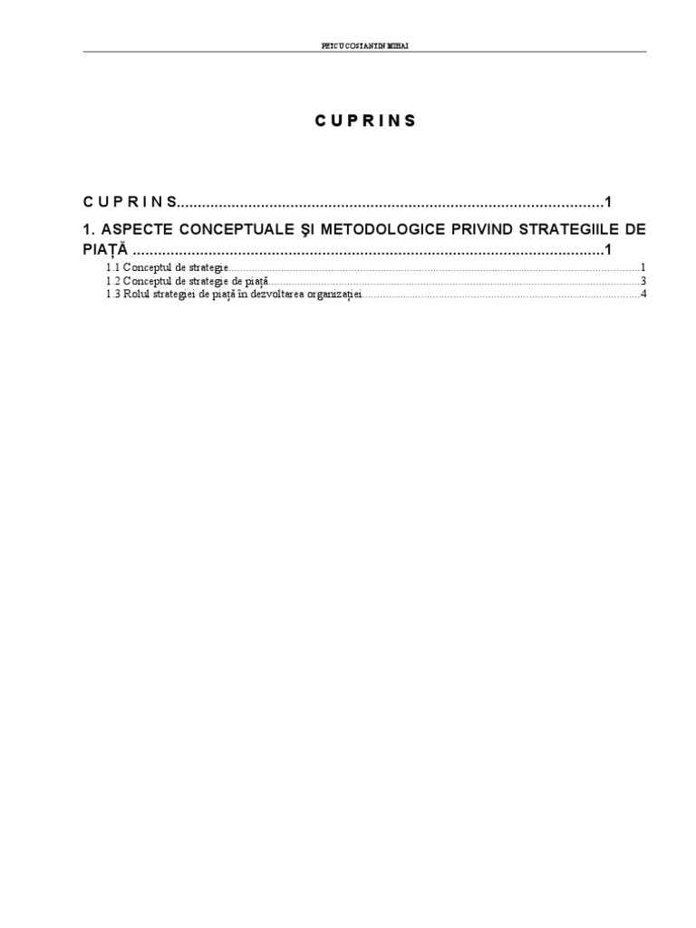 1.1 Conceptul de strategie............................................................................................................................................1 1.2 Conceptul de strategie de pia...............................................................................................................................3 1.3 Rolul strategiei de pia n dezvoltarea organizaiei...............................................................................................4