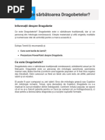 naliznd srbtoarea strmoeasc a dragobetelor, care are rdcini etimologice n eposul popular romnesc, fr a aduce vreun prejudiciu acestei srbtori similare cu alte ri i state din lumea occidental gen Sfntul Valentin, considerm de bun augur s ne ntoarcem la tradiiile i obiceiurule populare ale romnilor, tocmai pentru a cuantifica legtura spiritual ce se nfirip ntre tineri la vrsta considerat apropiat apariiei primilor fiori ai dragostei n vederea ntemeierii cstoriei, obiceiuri care etimologic analizate provin din perioada strmoilor notri geto-daci. Dragobetele este o srbtoare cu radacini slave de rit vechi celebrat pe teritoriul tarii noastre pe 24 (GlovoObretania) sau pe 28 februarie, l, 3 i 25 martie. Srbtoarea de Dragobete ( Vobritenia ) este considerat echivalentul srbtorii Valentines Day, sau ziua Sfntului Valentin, srbtoare a iubirii. Etimologia cuvntului a fost dezbtut de numeroi etnologi i filologi,
