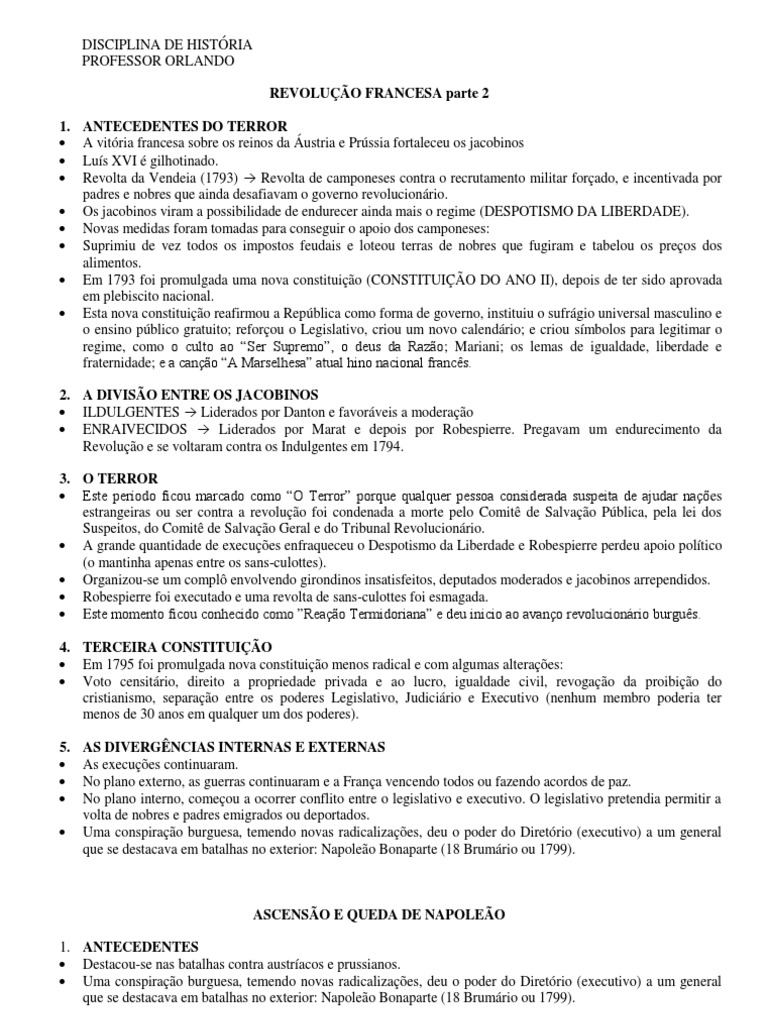 DISCIPLINA DE HISTRIA PROFESSOR ORLANDO REVOLUO FRANCESA parte 2 1.