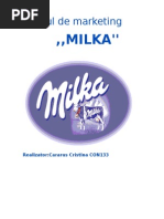 Milka este brandul de baz din portofoliul companiei Kraft Foods. Pentru a afla istoria firmei Milka este nevoie de o incursiune n istoria familiei i a companiei Suchard. Pe 9 octombrie 1797 s-a nscut Philippe Suchard, n Elveia, la Boundry. La vrsta de 17ani acesta i ncepe ucenicia de cofetar n ciocolateria fratelui su, din Berna. ntr-un anun publicat, el face reclam pentru un nou desert proaspt: au chocolat fin de sa fabrique, ceea ce nseamn n romn: ciocolat fin de cas. Din pcate, nu se cunoate exact cum producea aceast ciocolat. La un an dup deschiderea ciocolateriei, Philippe Suchard pune n practic cel de-al doilea proiect al su. Pentru a nu mai fi nevoit s produc totul manual, se hotrte s i extind afacerea. Astfel, n 1826 el nchiriaz o moar prsit, n satul nvecinat, Serrieres si o doteaza cu o roat, care i va servi drept main defrmntat. Cu ajutorul acestui utilaj, Suchard putea produce 2530 kg de ciocolat pe zi, pe care n prima faz a vndut-o sub form de tablete sau napolitane. n 1887 Carl Russ Suchard, ginere le lui Philippe Suchard fondeaz prima fabric de ciocolat din Imperiul Austro-Ungar de la acea vreme. La acel moment, ciocolatei (cu excepia ciocolatei lichide) nu i fusese adugat lapte, astfel nct aceasta era o delicates nchis la culoare i amruie. Abia n anul 1890 a fost scoas pe pia ciocolata cu lapte Suchard. Unsprezece ani mai trziu, n 1901, Legenda Mov vede lumina zilei, cnd numele mrcii Milka este nregistrat la Biroul de Mrci nregistrate de pe lng Curtea Regal din Berlin. nca de la apariie, ambalajul tabletei Milka este mov, pe acesta fiind imprimate o vcu i o vedere panoramic a Alpilor. Numele Milka reprezint, de fapt, alturarea primelor silabe ale cuvintelor lapte (Milch) i cacao (Kakao) n limba german. Vcua ntruchipeaz mai bine dect oricare alt animal originea mrcii Milka: lumea Alpilor i laptele din [Link] din motto-ul Apropie-i deprtrile, ndeprteaz-te de toate cele cunoscute, Milka nu a colorat numai ambalajul, ci i emblema mrcii(vacua) a primit de asemenea culoarea mov, atrgnd atenia din primul moment asupra ciocolatei i devenind una dintre cele mai de succes figuri publicitare. Vacua se ncadreaz perfect n imaginea mrcii, ntruchipnd fineea laptelui din Alpi.n Alpi,