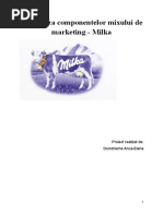 Primul lucru care ne vine n minte cnd ne gndim la promovare, este culoarea mov. Cei de la Milka i-au creat o imagine prin aceast culoare mov, nc de la lansarea companiei. n anul 1901 se lanseaz ambalajul de culoare mov al ciocolatei Milka. Pe fondul mov al ambalajului, aprea pentru prima oara o vcu din Alpi, pe vremea aceea nc n alb i [Link], de ce neaprat o vcu ? Aceasta ntruchipeaz mai bine dect oricare alt animal originea mrcii Milka: lumea Alpilor i laptele din Alpi. i cum a cptat vcua culoarea mov? Inspirat din motto-ul Apropie-i deprtrile, ndearteaz-te de toate cele cunoscute, Milka nu a colorat numai ambalajul; emblema mrcii vcua a primit de asemenea culoarea mov, atrgnd atenia din primul moment asupra ciocolatei. Dup ce, n prima campanie publicitar au aparut multe alte obiecte de culoare mov brazi de Craciun, baloane etc vcua mov va rmne, peste ani, emblema mrcii Milka. Aceasta se ncadreaz perfect n imaginea mrcii, ntruchipnd fineea laptelui din Alpi. n Alpi, aerul este mai curat, apa este mai pur i iarba mai verde. De aceea vcuele dau cel mai bun lapte. Din cel mai bun lapte, se produce cea mai bun cea mai fin ciocolat. Aceast sintagm a deschis calea vcuei mov din Alpi, i de atunci este esena reclamelor Milka.