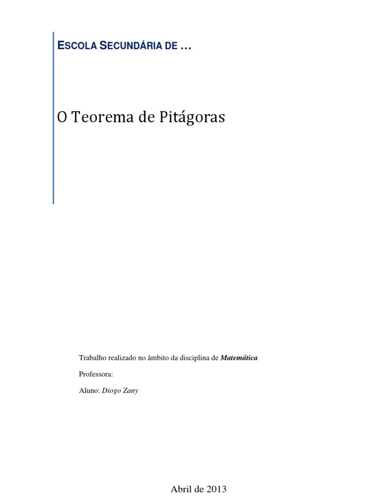 Pombo, O. (s.d.). Teorema de Pitgoras. URL: http://www.educ.fc.ul.pt/docentes/opombo/seminario/ euclides/teoremapitagoras.htm. Wikipdia (2013). Teorema de Pitgoras. URL: http://pt.wikipedia.org/wiki/Teorema_de_Pitgoras.