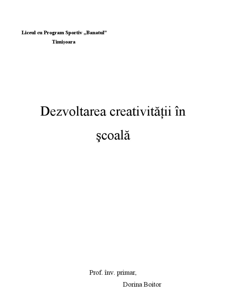 Dezvoltarea creativitii n coal