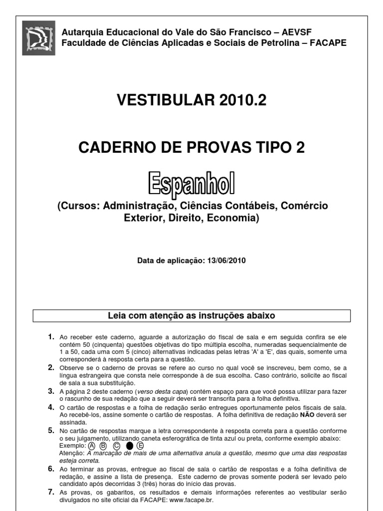 Vestibular FACAPE 2010.2
