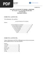 2. Avem mai multe numere naturale consecutive. Ultimul este cu 98 mai mare decat primul. Suma ultimelor doua numere este 199. a) Cate numere sunt? b) Calculati suma lor. 2 puncte 2 4 3. Doi copii au aceeasi suma de [Link] ce primul a cheltuit 3 din sum, iar al doilea din 5 sum, se constat c primului i-au rmas cu 4000 lei mai mult decat celui de-al doilea. Ce sum a avut fiecare copil? 2 puncte 4. Aria unui dreptunghi este 150 cm 2 . Daca acest dreptunghi se poate acoperi cu 6 patrate egale, sa se afle perimetrul dreptunghiului. Cate dreptungiuri cu aceasta proprietate sunt? 2 puncte