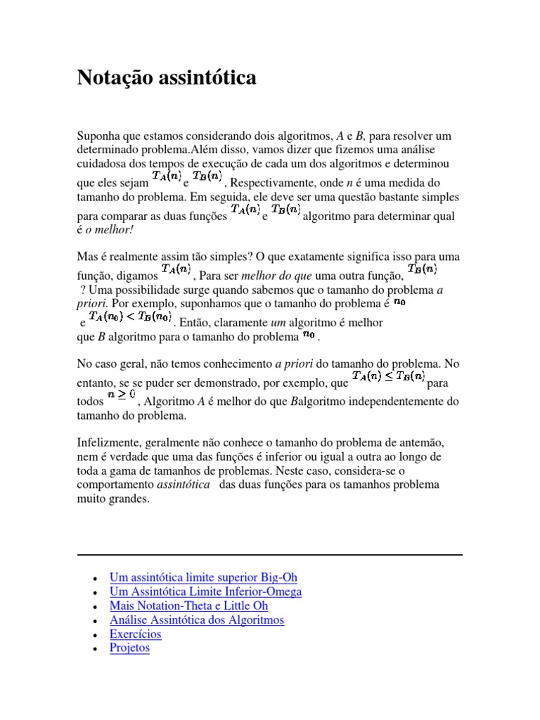 Um assinttica limite superior Big-Oh Um Assinttica Limite Inferior-Omega Mais Notation-Theta e Little Oh Anlise Assinttica dos Algoritmos Exerccios Projetos