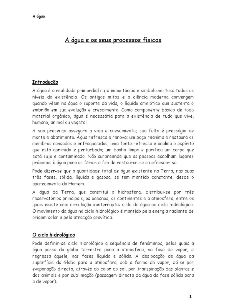 O ciclo da água na Terra permite-nos basicamente avaliar os processos