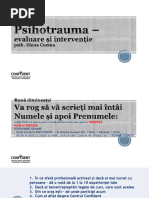 Trauma psihica este prezenta cel putin odata in viata noastra si este responsabila pentru jumatate dintre problemele emotionale si psihice: pentru a putea sa ii facem fata, trebuie sa fim inarmati cu unele informatii si sa fim indeajuns de puternici sa cerem aujtorul specialistilor. Traume psihice pot fi declansate si de separarea de persoanele dragi, situatiile de abuz ori pierderea locului de munca, accidentele, conflictele si catastrofele naturale. Dintre persoanele adulte din Romania, se estimeaza ca peste 70% au trait sau vor trai experienta a cel putin unui eveniment traumatic la un moment dat in viata lor, iar trauma psihica este responsabila pentru aproape 50% din totalul problemelor emotionale si psihice. Psihologii au definit trauma ca un eveniment singular de o intensitate foarte mare eveniment ce apare in viata individului si care depaseste posibilitatile sale de adaptare. In general acest eveniment neplacut genereaza o sensibilizare excesiva a individului la emotiile anterioare. Atunci cand trauma duce la stress post-traumatic daunele pot implica schimbari psihice la nivelul creierului uman, schimbari de natura chimica care afecteaza capacitatea persoanei de a face fata in mod adecvat stresului si care pe termen lung genereaza efecte patoene durabile. Multe trauma psihice au efecte indelungate negative si influenteaza dezvoltarea individului atat in plat fizic, cat si in societate. Individul este afectat datorita acestor trauma psihice atat din puncte de vedere emotional, cat si profesonal si personal. Trauma poate fi caracterizata ca fiind o reactie normala la o situatie anormala, Spre deosebire de stres, care afecteaza temporar psihicul, acesta tinzand sa-si recapete echilibrul in mod natural, trauma ne diminueaza capacitatea de a gestiona problemele cu care ne confruntam, provocand rupturi la nivelul psihicului. In functie si de severitate se disting mai multe criterii de trauma psihice, precum: Situatii traumatice simple; Situatii traumatice complexe; Situatii cu afectare directa;