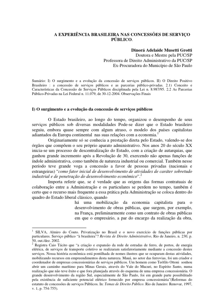 Dinor Adelaide Musetti Grotti Doutora e Mestre pela PUC/SP Professora de Direito Administrativo da PUC/SP Ex-Procuradora do Municpio de So Paulo