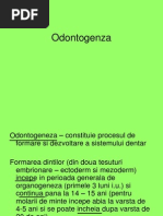 Smaltul incepe sa se depuna si se formeaza jonctiunea amelodentinara Prelungirile odontoblastelor raman sechestratein teritoriul respectiv, se ingroasa usor in partea centrala,mentinandu-si cele doua capete efilate si capata un aspect de fus Au cuntinut organic crescut cumparativ cu zonele de smalt adiacent Distribuie la intamplare, traverseaza aria redusa de smalt intern si patrund pe o distanta redusa in smaltul mijlociu Nu au orintare precisa si nu urmeaza directia prismelor; deoarece prismele se formeaza in unghi fata de axul ameloblastelor, directia prismelor este divergenta fata de prisme. c) Tufele smaltului Apar in zone in care mineralizarea nu este completa, proteinele smaltului tanar nefiind complet transformate in timpul maturizarii Prezinta un continut organic ridicat Formare: Transformari importante in orientarea unor diferite grupe de prisme, deasupra jonctiunii amelodentinare Grupele de prisme prezinta un procent diferit de mineralizare a smaltului prismatic si a smaltului interprismatic, fapt care duce la aparitia unor arii mai putin mineralizate cu un continut organic ridicat de 3-4 ori peste cantitatea medie Exista mai multa matrice organica la limitele prismelor respective si chiar intre cristalele prismelor Orientare in plan longitidinal, pe aceeasi directie ca si lamelele Identificabile optim in sectiuni slif Forma ramificata, cu o zona de implantare, cu o radacina bazala lanivelul jonctiunii amelodentinare, sau chiar in dentina Mai inalte comparativ cu fusurile Se extind pana in treimea interna a smaltului mijlociu 1.3. SMALTUL MIJLOCIU Aria cea mai extinsa a smaltului Caracterizat prin prezenta prismelor Structuri morfologice specifice Atribuite unor modificari aparute in cursul procesului de depunere si mineralizare a smaltului: o In orientarea prismelor (benzile Hunter-Schreger, smaltul noduros) o In modelul de crestere a smaltului (striatiile transversale, liniile Retzius, linia neonatala) a. Benzile Hunter-Schreger Localizate in treimea intrena a smaltlui mijlociu